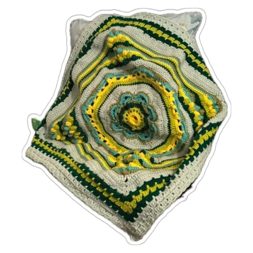 Hand Crochet pillow case made created in 5 green shades and yellow.